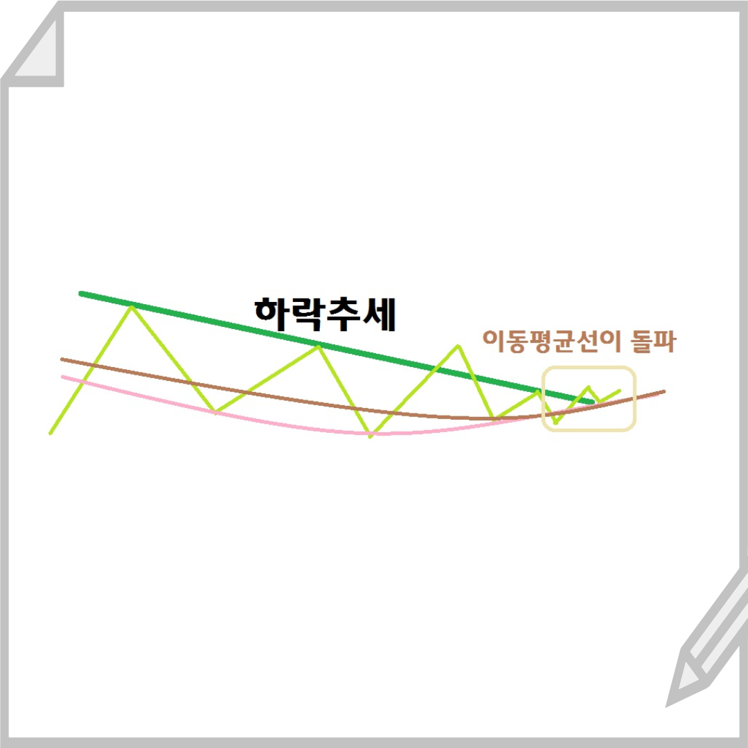 가장 중요한 신호 중 하나는 바로 '이동평균선의 돌파'입니다. 장기 이동평균선이 하락 추세선을 돌파하는 모습은 하락세가 약화되고 상승 에너지가 축적되고 있음을 의미합니다. 여기에 거래량 증가가 동반된다면, 상승 전환의 확률은 더욱 높아집니다.