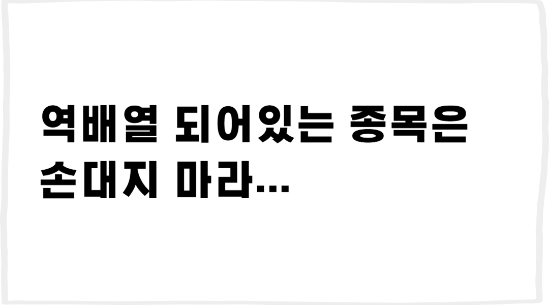 역배열된 종목은 절대로 손대지 않는 것이 좋습니다. 이동평균선이 역배열되어 있다는 것은 그동안 해당 종목에 투자했던 대부분의 투자자들이 손해를 보고 있다는 의미입니다. 이러한 투자자들은 주가가 조금이라도 오르면 손실을 최소화하고 빠져나가려는 생각만 할 것입니다.