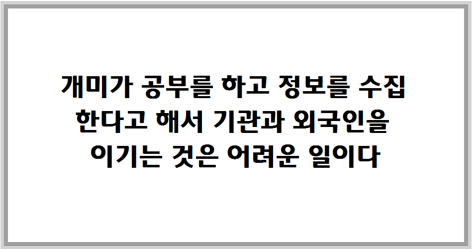 "개미가 공부를 하고 정보를 수집한다고 해서 기관과 외국인을 이기는 것은 어려운 일이다."