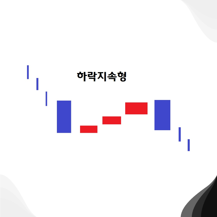 상승 지속형과는 반대로, 하락 추세가 이어지던 중 잠시 반등하는 듯한 모습에서 나타나는 패턴입니다. 긴 음봉(빨간색) 이후, 그 음봉의 몸통 안에서 여러 개의 작은 양봉(파란색)이나 음봉이 짧게 이어지는 형태입니다. 역시, 이 작은 캔들이 처음의 긴 음봉 범위를 벗어나지 않습니다. 주가가 잠시 반등하거나 매수세가 일시적으로 유입되었지만, 여전히 매도세가 우위에 있어 기존의 하락 추세가 유지될 가능성이 높다는 것을 의미합니다. 이 반등 구간에서 거래량이 크게 늘어나지 않는다면 더욱 신뢰도가 높습니다.