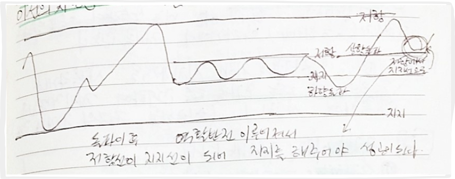 지지선이니까 무조건 지지받을 거라 생각하고, 저항선이니까 못 뚫을 거라 믿는 것.