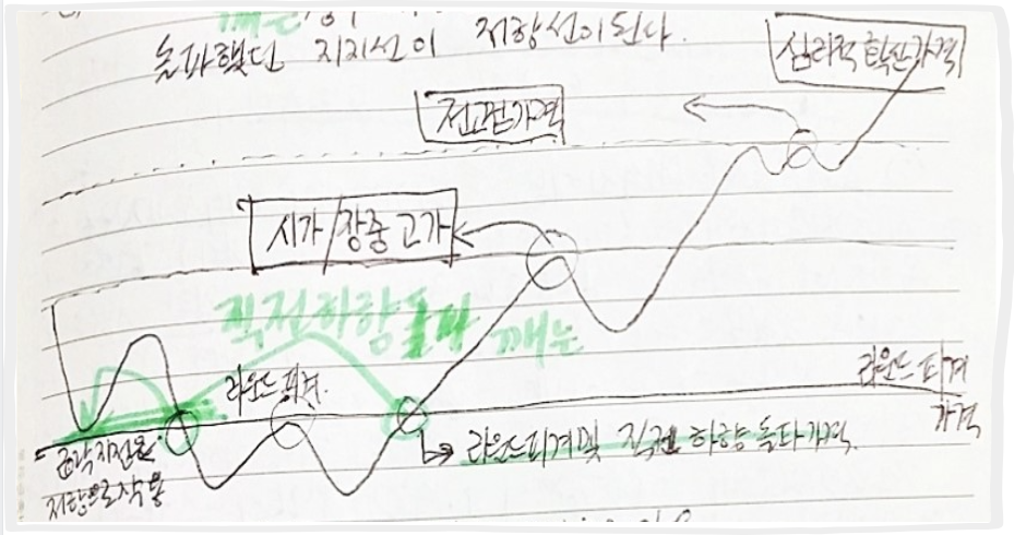 예전에 내가 당했던 구간, 또는 신기하게 계속 수익 났던 매매 포인트를 꼭 기록해 두면 그게 내 자산이 됩니다.